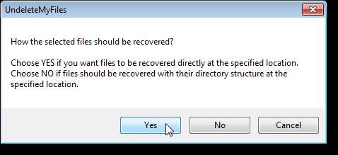 Opět se zobrazí dialogové okno, kde zjistíte, zda chcete zachovat původní strukturu obnovených souborů. Chcete-li obnovit pouze soubory, klikněte na Ano. Chcete-li obnovit soubory s původní adresářovou strukturou, klikněte na Ano.