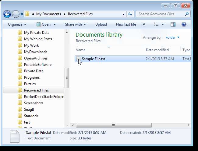 Obnovené soubory se uloží do určené složky.