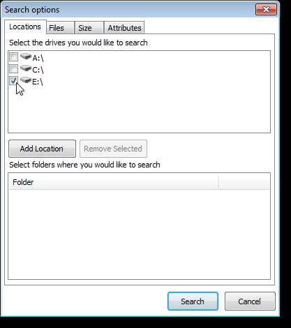Na kartě Umístění v dialogovém okně Možnosti hledání vyberte pevné disky, které chcete prohledat, nebo klikněte na Přidat umístění a prohledejte konkrétní složku na pevném disku.