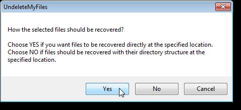 Zobrazí se dialogové okno, které zjistí, zda chcete zachovat původní strukturu obnovených souborů. Chcete-li obnovit pouze soubory, klikněte na Ano. Chcete-li obnovit soubory s původní adresářovou strukturou, klikněte na Ano.