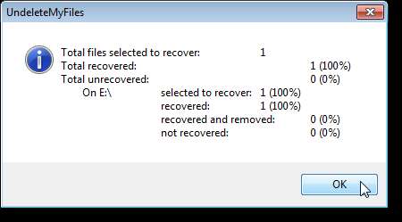 Po dokončení procesu obnovení se v dialogovém okně zobrazí statistika procesu. Klikněte na OK.