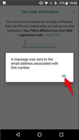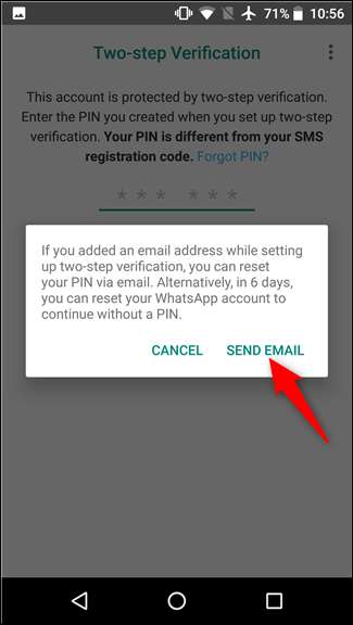 Ve vyskakovacím okně klepněte na možnost „Odeslat e-mail“. Tím odešlete zprávu na e-mailovou adresu, kterou má WhatsApp zaznamenanou - stejnou, jakou jste použili k nastavení dvoustupňového ověření.