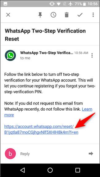 Brzy byste měli obdržet e-mail s odkazem, který dvoufázové ověření vypne. Klepněte na odkaz a budete přesměrováni na svůj účet WhatsApp v prohlížeči.