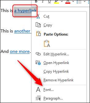 Otevřete dokument aplikace Word, který obsahuje podtržený hypertextový odkaz. Zvýrazněte hypertextový odkaz kliknutím a přetažením kurzoru přes text, pak klepněte pravým tlačítkem myši na text pro zobrazení kontextového menu. V kontextovém menu klepněte na tlačítko "Písmo."