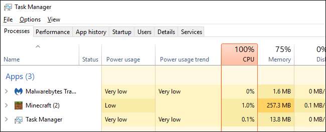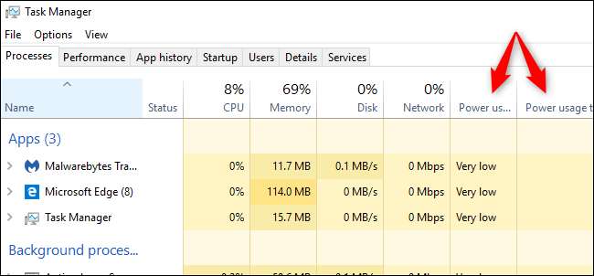 Systém Windows vám zde bohužel neposkytuje přesná čísla. Poskytuje pouze přibližnou představu o spotřebě energie, která by pro většinu procesů ve vašem systému měla být „velmi nízká“. Pokud proces spotřebovává více energie, než je tento - zejména pokud běží na pozadí, možná budete chtít tento proces ukončit, abyste ušetřili energii baterie ve svém notebooku nebo tabletu.