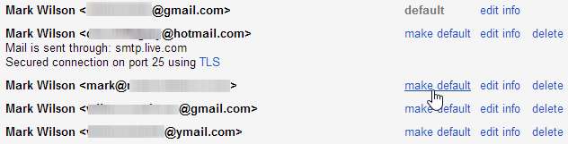 Pokud se nerozhodnete použít jinou, Gmail bude i nadále výchozí používat vaši hlavní e-mailovou adresu Google, ale toto chování lze změnit. Vraťte se do části „Účty a import“ v Nastavení a poté klikněte na odkaz „nastavit jako výchozí“ vedle e-mailové adresy, kterou chcete použít.