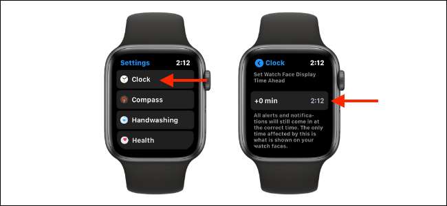 Když se vrátíte na čelo hodinky, uvidíte aktualizovaný čas. Jak vidíte ve snímku níže, tato funkce změní pouze čas na obličeji hodinek a ne v aplikacích.