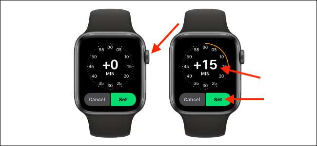 Nyní můžete otočit digitální korunou, abyste nastavili čas vpřed. Sledování můžete nastavit vpřed mezi 1 a 60 minutami.