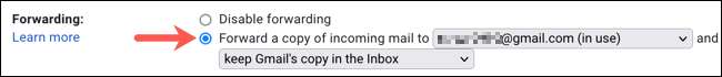 Poté, co jste úspěšně nastavit přeposílání e-mailovou adresu, musíte zapnout funkci přesměrování. K tomu, zvolte „předá kopii příchozí e-maily se.“
