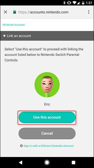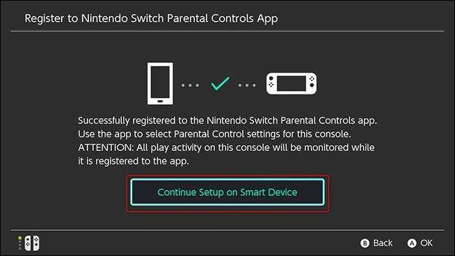 Jakmile bude vaše konzole úspěšně zaregistrována k vašemu účtu, váš přepínač zobrazí potvrzovací obrazovku. Klepněte na „Pokračovat v nastavení na chytrém zařízení“ a vraťte se zpět do aplikace Rodičovská kontrola v telefonu.