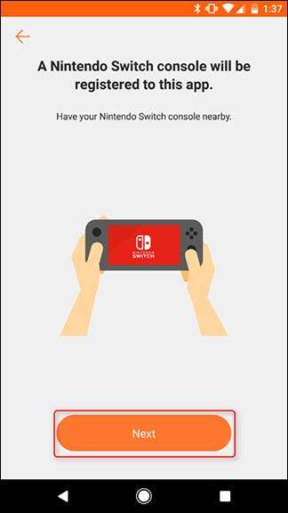 Další obrazovka vám řekne, abyste měli konzoli připravenou. Klepnutím na Další zobrazíte svůj registrační kód a následných několik kroků uchopíte přepínač.
