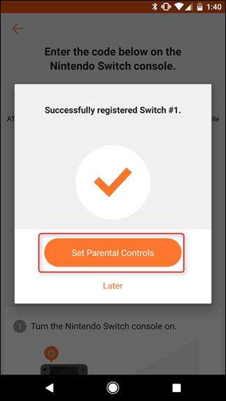 Váš telefon by měl říci, že jste úspěšně zaregistrovali přepínač. Klepnutím na Nastavit rodičovskou kontrolu přizpůsobíte svá omezení.