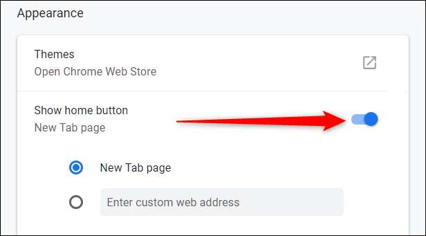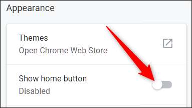 Přejděte dolů a pod nadpisem Vzhled zapněte možnost „Zobrazit tlačítko Domů“.
