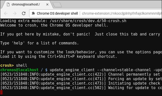 (Pokud se místo toho zobrazí chybová zpráva „neznámý příkaz“, musíte nejprve Chromebook přepnout do režimu pro vývojáře.)