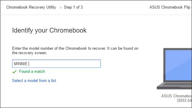 Pokud neznáte číslo modelu Chromebooku, můžete v Chromebooku přejít do režimu obnovení a na obrazovce pro obnovení se zobrazí číslo modelu.