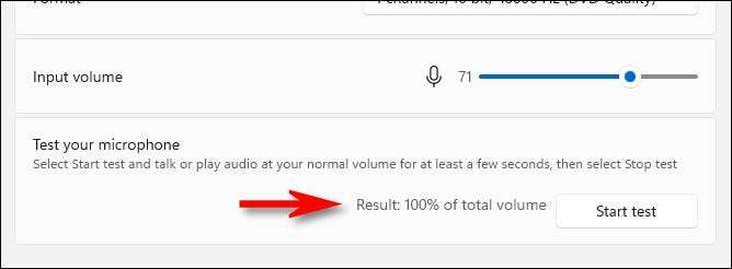 Když je test dokončen, zobrazí se výsledek vedle tlačítka "Start Test". Výsledek je dodáván jako procento celkového objemu vstupu, který systém Windows zjistil.