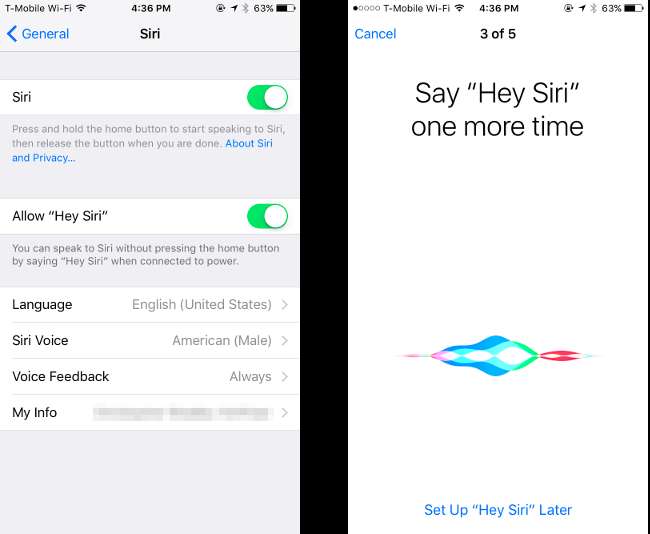 Apple přidal některé funkce hlasového tréninku Siri v iOS 9 . Aktivujte funkci „Hey Siri“ - která vám umožní říci „Hey Siri“ a začni mluvit se Siri odkudkoli - a budete vyzváni k provedení hlasového tréninku.