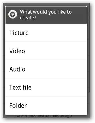 Ve skutečnosti můžete vytvořit nový dokument, pořídit fotografii nebo video a uložit jej, aniž byste opustili samotnou aplikaci. Na zařízení stiskněte tlačítko Nabídka a vyberte možnost Nový.