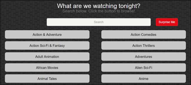 Pokud chcete obzvláště zajímavý způsob, jak procházet žánrovými značkami a opravdu proniknout do velmi specifických subžánrů, musíme také doporučit Netflix-O-Matic , velmi dobře uspořádaný web, který používá značky podobné WordPressu, které vám pomohou rychle se dostat hlouběji a hlouběji do Netflixu. Dramata v mandarínském jazyce zasazená do starověku někdo? Pamatujete si, když jsme řekli, že náš seznam komediálních kategorií ve srovnávací tabulce výše právě začínal škrábat povrch? Co takhle Vizuálně nápadné vzrušující komedie ze zahraničí nebo Zdůrazněné krizové komedie ?