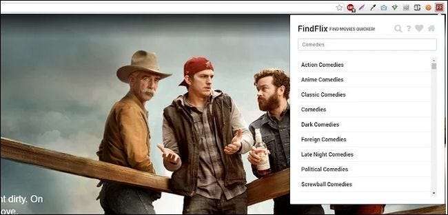 Kromě webových stránek existují také dvě praktická rozšíření prohlížeče, která pokrývají stejnou půdu. FindFlix je k dispozici pro oba Chrome a Firefox , s Kategorie Netflix jako další možnost pro uživatele prohlížeče Chrome.