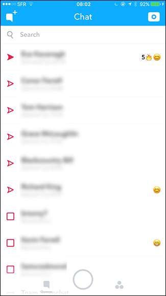 Jakmile dokončíte úpravy Snapu, odešlete jej klepnutím na ikonu modré šipky vpravo dole a dostanete se do seznamu kontaktů.