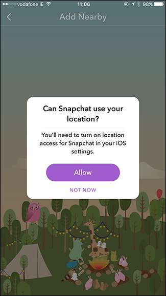 Je zřejmé, že pokud vypnete oprávnění k poloze, funkce Snap Map nebude fungovat. Pokud se ho pokusíte použít, budete vyzváni k povolení služeb určování polohy.