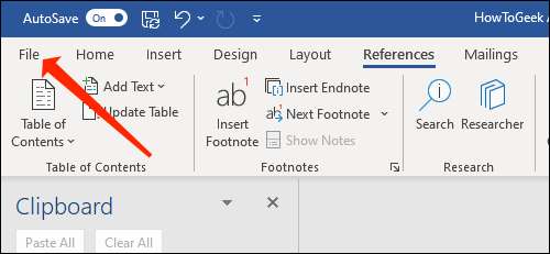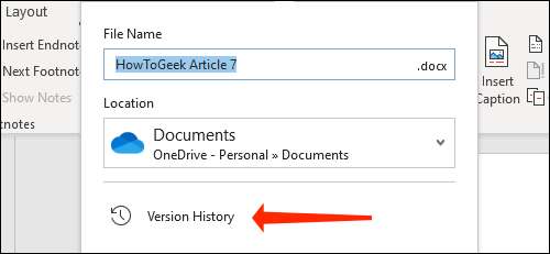 Prvním krokem je zobrazit předchozí verze dokumentů Word. Nejrychlejší způsob, jak to udělat, je kliknutím na název souboru v horní liště v aplikaci Microsoft Word.