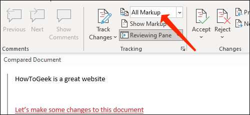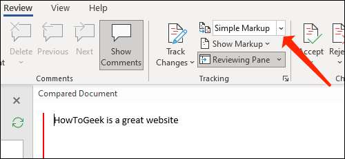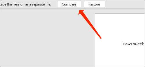 Na stejné lince, můžete zvolit tlačítko „Porovnat“, aby zjistil, co se změnilo. To bude kopírovat starou verzi souboru do nového dokumentu a upozornit na změny ve srovnání s předchozími verzemi dokumentu.