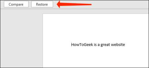 Budeme se nyní blíží tento dokument a návrat k předchozímu, kdy jsme se poprvé viděli možnost porovnat starší verzi. Zde můžete kliknout na tlačítko „Obnovit“, aby se tento nejnovější verzi dokumentu.