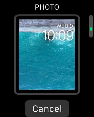 Nyní švihněte prstem, dokud nezvolíte možnost „Fotografie“. Opětovným klepnutím jej nastavíte jako nový ciferník.
