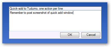 Nejneuvěřitelnější funkcí této aplikace je globální klávesová zkratka Win + Ctrl + T, která otevře tento malý dialog pro rychlé přidání.