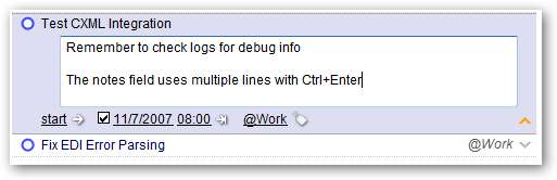 Nyní, když máte svoji položku v seznamu úkolů, použijte klávesovou zkratku Ctrl + T k zaostření pole značek, které má zabudované pohodlné automatické dokončování: