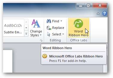 Na kartě Domů uvidíte Ribbon Hero umístěný na panelu Office Labs.