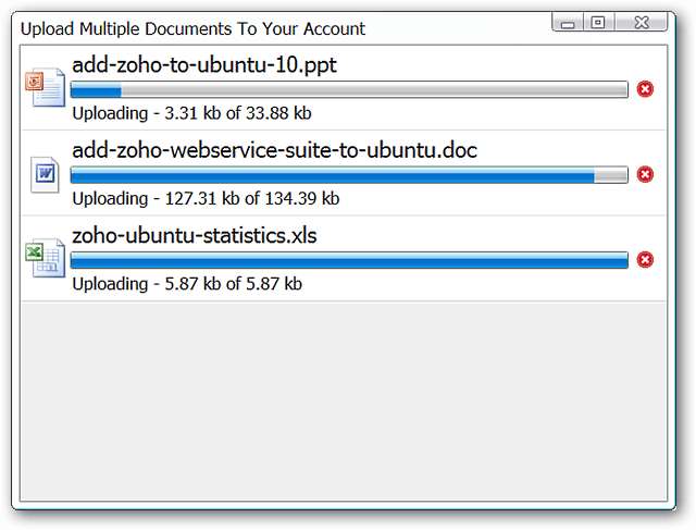 Okno nahrávání vypadá stejně jako okno správce stahování, s výjimkou obráceně.
