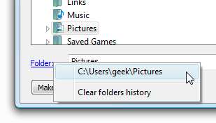 Tady je tato funkce opravdu užitečná ... pokud kliknete na ten malý modrý odkaz na složku v levém dolním rohu, zobrazí se rozevírací seznam historie s posledními možnostmi složky.