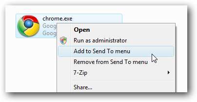 Nové položky si také všimnete, když kliknete pravým tlačítkem na spustitelný soubor, což vám umožní rychle přidat nebo odebrat tuto aplikaci z nabídky Odeslat.