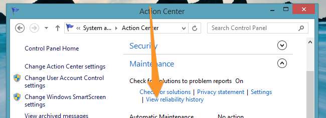 Jak se tedy tento nástroj otevíráte, ptáte se? Microsoft to pohřbil za spoustu kliknutí, takže vám všechny tyto kroky ani nechystáme. Pokud otevřete Centrum akcí, můžete se tam dostat pomocí odkazu „Zobrazit historii spolehlivosti“, ale doporučujeme otevřít nabídku Start nebo úvodní obrazovku a vyhledat „spolehlivost“, která je pravděpodobně rychlejší.