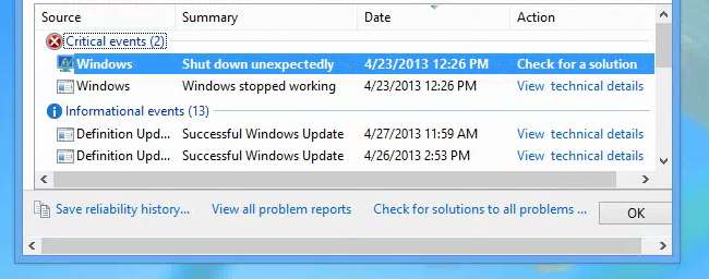 Reliability Monitor sleduje historii vašeho počítače - kdykoli dojde k chybě aplikace, zablokuje se nebo vám Windows zobrazí modrou obrazovku smrti. Sleduje také další důležité události, například když je nainstalován software nebo aktualizace systému Windows načte novou opravu.