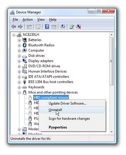 Všimněte si, jak mám v seznamu 6 myší, i když mám nainstalované pouze dvě (a můj kreslící tablet). Další 3 myši jsou staré myši, které jsem používal, dokud nezemřely ... Geek má tendenci se opotřebovávat vstupními zařízeními velmi rychle, protože nikdy neopustí počítač ...
