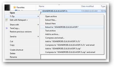 Jakmile najdete správný port pro váš telefon a verzi systému Android, kterou chcete použít, extrahujte soubory do složky pomocí 7-zip .