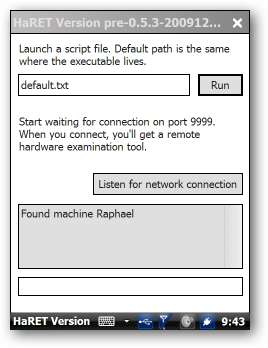 Otevřete složku andboot a spusťte haret.exe. Pokud je pravý soubor startup.txt v kořenovém adresáři složky andboot, měli byste být schopni kliknout na „Spustit“ a zobrazí se obrazovka rychlého načítání, zatímco haret vypne Windows Mobile a spustí Android.