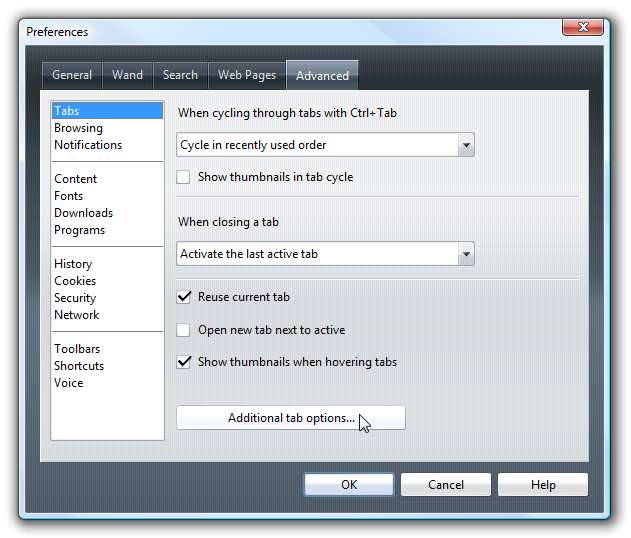 Dále budete muset kliknout na Pokročilé \ Karty a poté na „Další možnosti karty“: