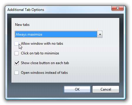 Nyní nezapomeňte zrušit zaškrtnutí políčka „Povolit okno bez karet“ (ve výchozím nastavení nemusí být zaškrtnuto)