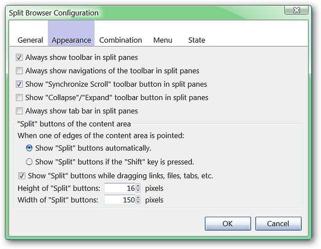 Vyberte možnosti, které chcete mít aktivní pro své rozdělené podokna, a možnosti vzhledu, které chcete mít pro rozdělená tlačítka v „Oblasti vzhledu“.