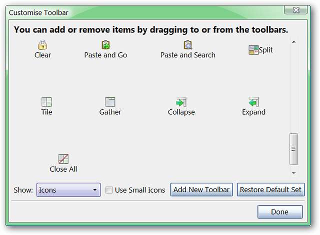 Chcete-li pro rozšíření přidat tlačítka na panelu nástrojů, můžete si vybrat ze šesti.