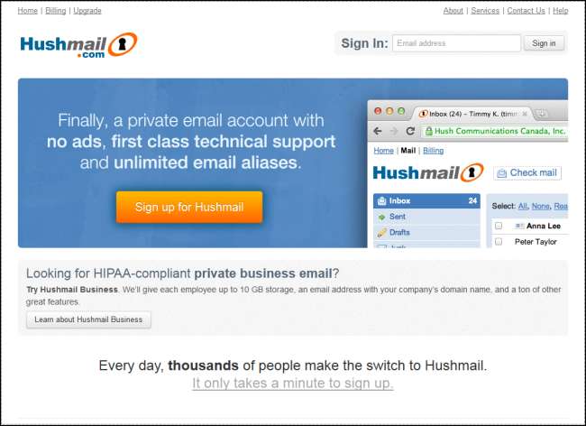 Hushmail je bezpečná bezplatná webová e-mailová služba, která vypadá a vypadá jako každá jiná webová e-mailová stránka, ale do vašich e-mailů přidává silné šifrování, které chrání vaše tajemství před zvědavým pohledem. Používá šifrování vyhovující standardům a poskytuje mobilní přístup (Android, iPhone, BlackBerry atd.).