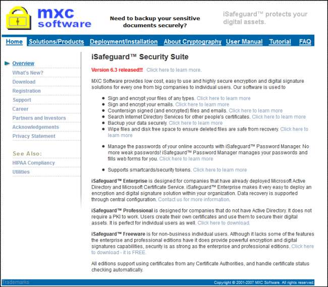 The freewarová edice jejich softwaru je pro nepodnikatelské jednotlivé uživatele. Ačkoli to postrádá některé funkce podniková a profesionální vydání Poskytuje výkonné funkce šifrování a digitálního podpisu a zabezpečení je stejně silné jako podnikové a profesionální edice.