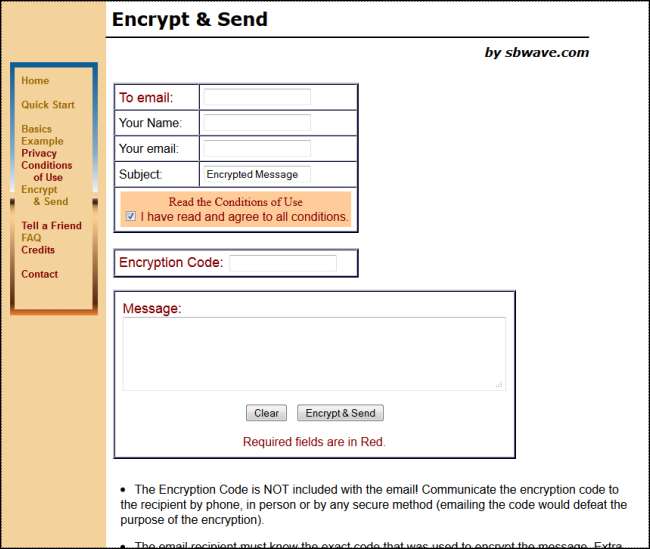 Sbwave Encryptor je bezplatná služba, která šifruje textové zprávy pro doručování e-mailů. Šifrovaný e-mail se zadává a odesílá prostřednictvím webového formuláře. Příjemce obdrží zašifrovanou zprávu v podobné podobě, poté jednoduše zadá vámi vybraný šifrovací kód a zpráva je dešifrována.