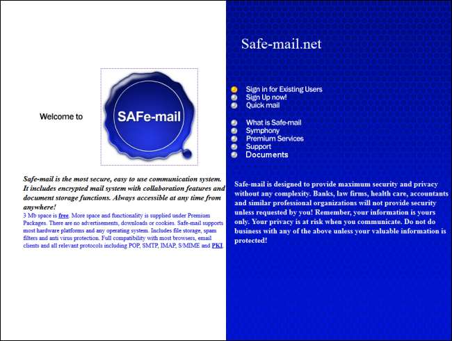 Není třeba instalovat žádný software, nic, k čemu by se bylo možné přihlásit, ani žádné reklamy připojené ke zprávám. Tato služba vyžaduje šifrovací kód, který znáte vy i příjemce, a poštovního klienta, který rozumí jazyku HTML, jako jsou Outlook Express, Netscape Messenger, Hotmail, NetZero, Lycos nebo libovolný počet bezplatných e-mailových systémů.