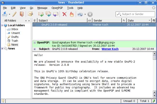 Enigmail je rozšíření zabezpečení pro Mozilla Thunderbird a Seamonkey. Umožňuje vám psát a přijímat e-mailové zprávy podepsané nebo šifrované standardem OpenPGP. Enigmail lze také použít s Eudora OSE a Postbox (pomocí rozšíření Postbox).